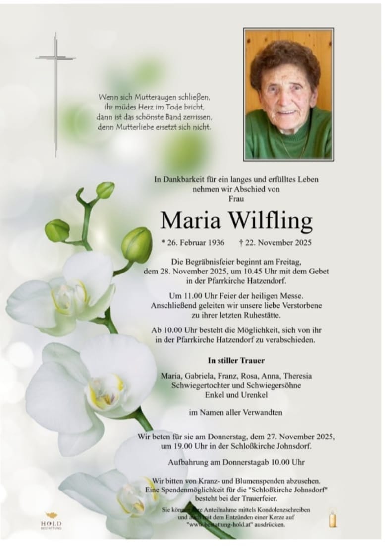 Am 22.11.2025 ist unsere liebe Tante, Maria Wilfling (Tante Mitzi) verstorben.